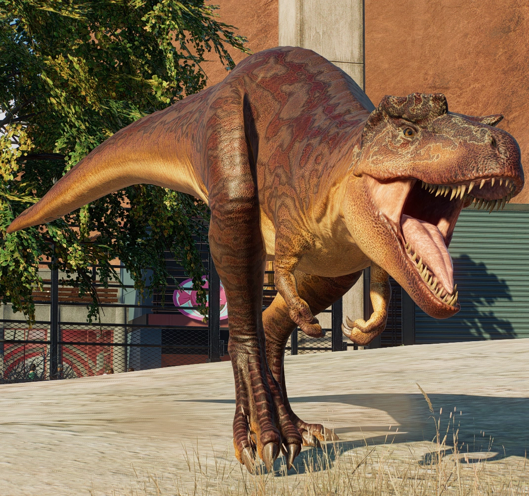 Albertosaurus is a genus of tyrannosaurid dinosaur in the Jurassic World Evolution series. Originating from Late Cretaceous North America, it is physically similar to Tyrannosaurus, though is smaller and more slender.
