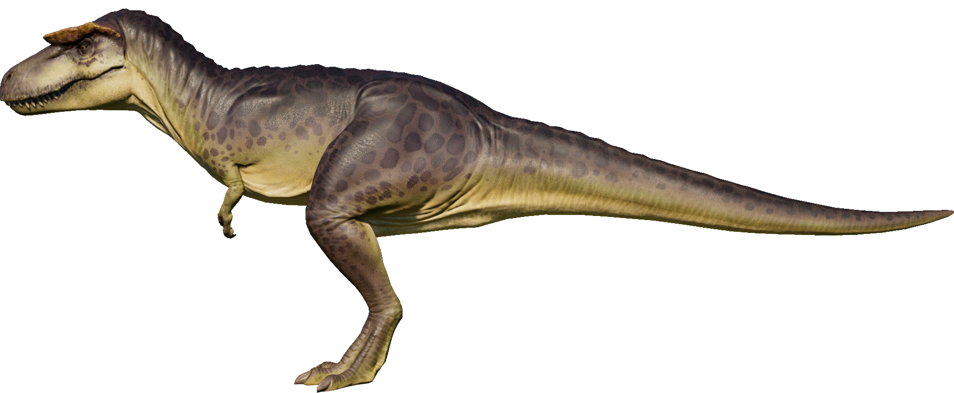 The remains of Albertosaurus are so extensive that the effects of certain diseases and parasites have been recorded on some individuals. The Albertosaurus featured in the game is heavier and slightly larger than the average size of its real-life counterpart. In reality, the dinosaur's lacrimal brow horns are more prominent and known from Albertosaurus close relative, Gorgosaurus.