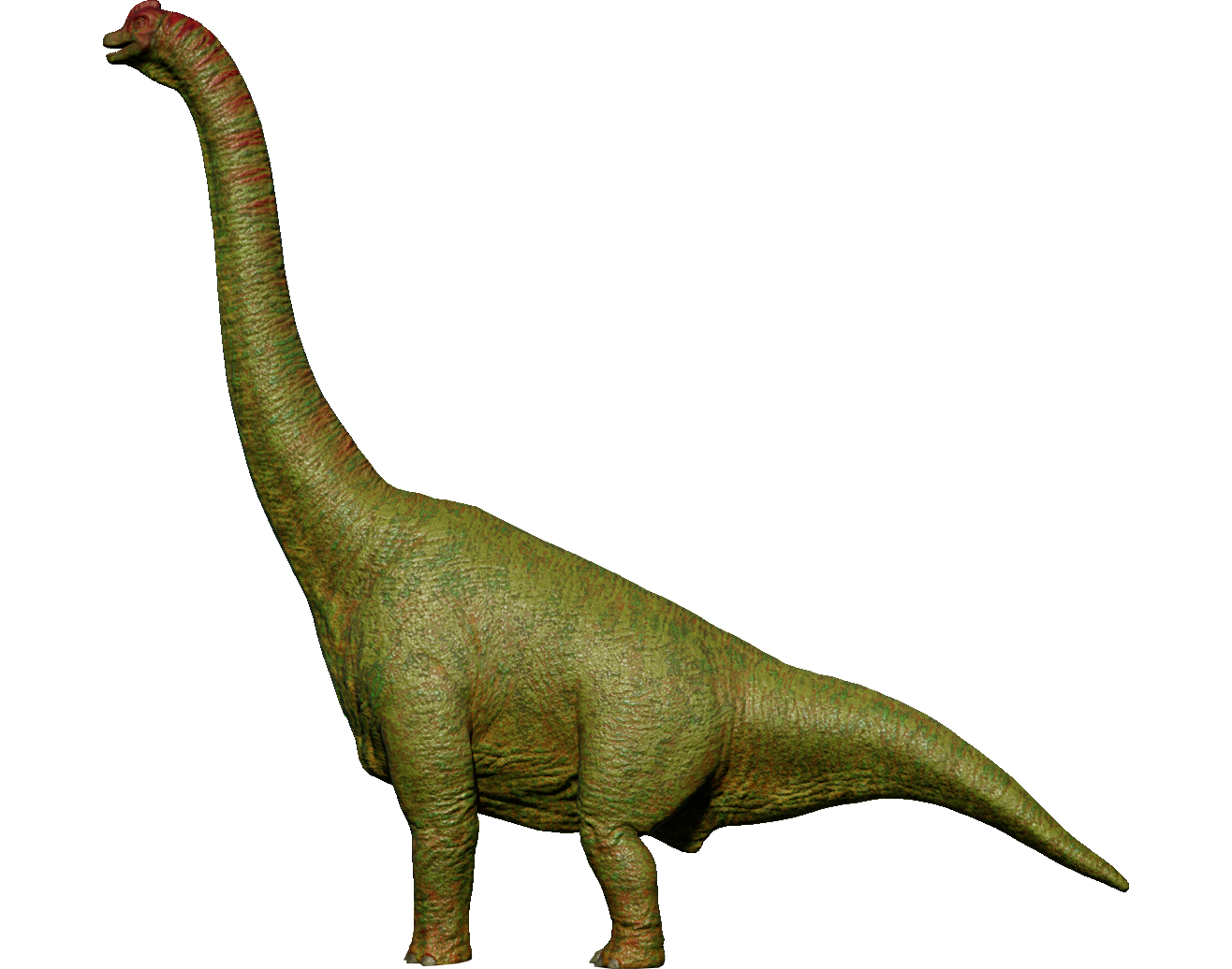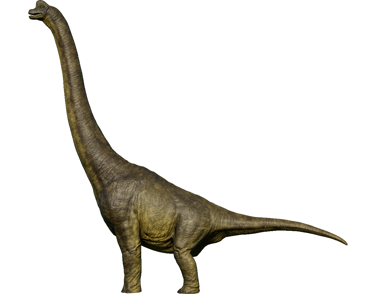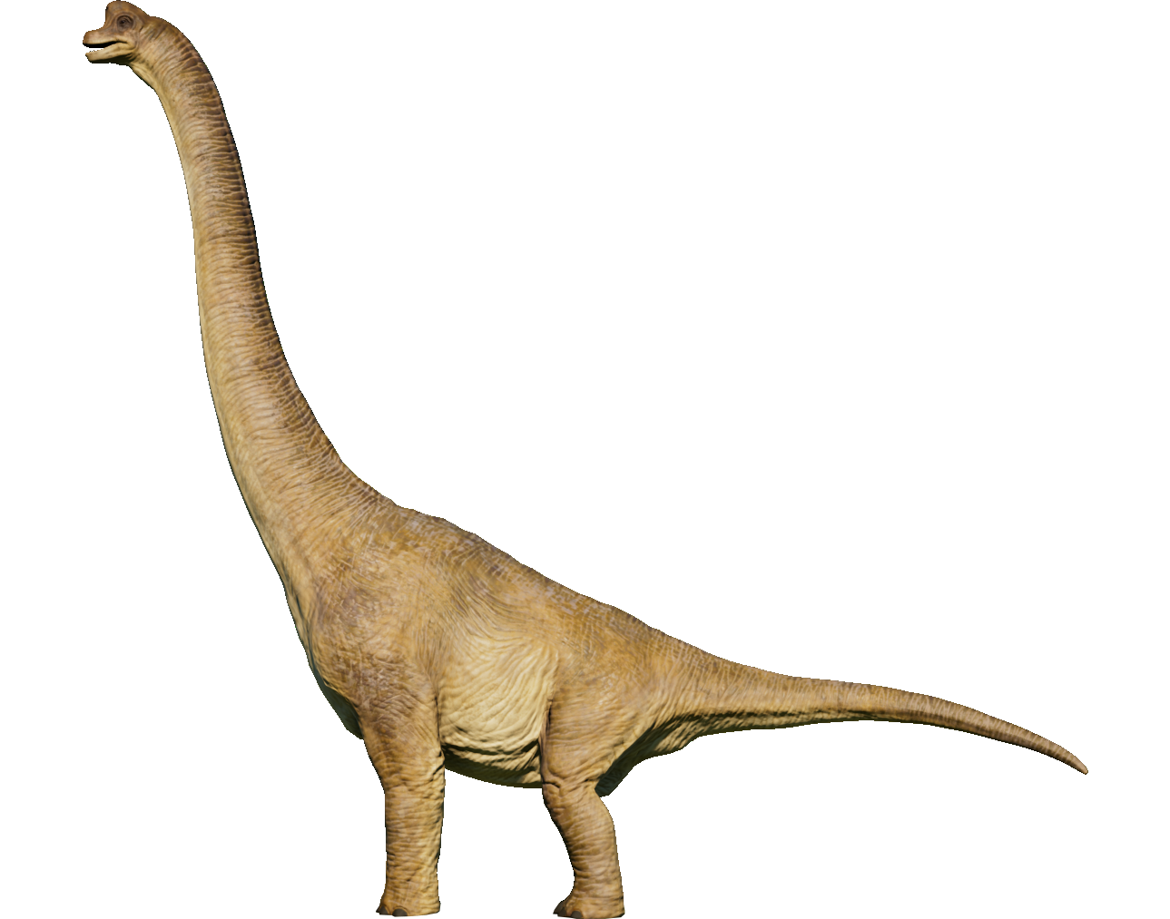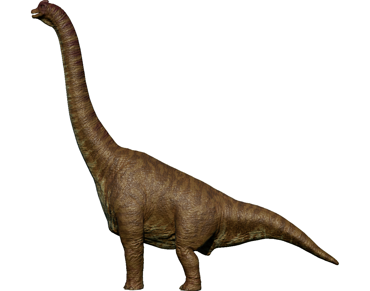 One of the largest and most popular dinosaurs (let alone, sauropod dinosaurs) in the world, Brachiosaurus once roamed North America during the Late Jurassic and is one of the rarer sauropods from this area. Brachiosaurus and its family have two notable features that distinguish them from other sauropods; their front legs are proportionally longer than their rear legs and their neck is held upright. This allowed Brachiosaurus to reach high into the tree-tops and avoid competition with ground-dwelling herbivores. A fully grown Brachiosaurus probably didn't have much to fear from carnivores, but juveniles may have fallen prey to Allosaurus and Ceratosaurus.
