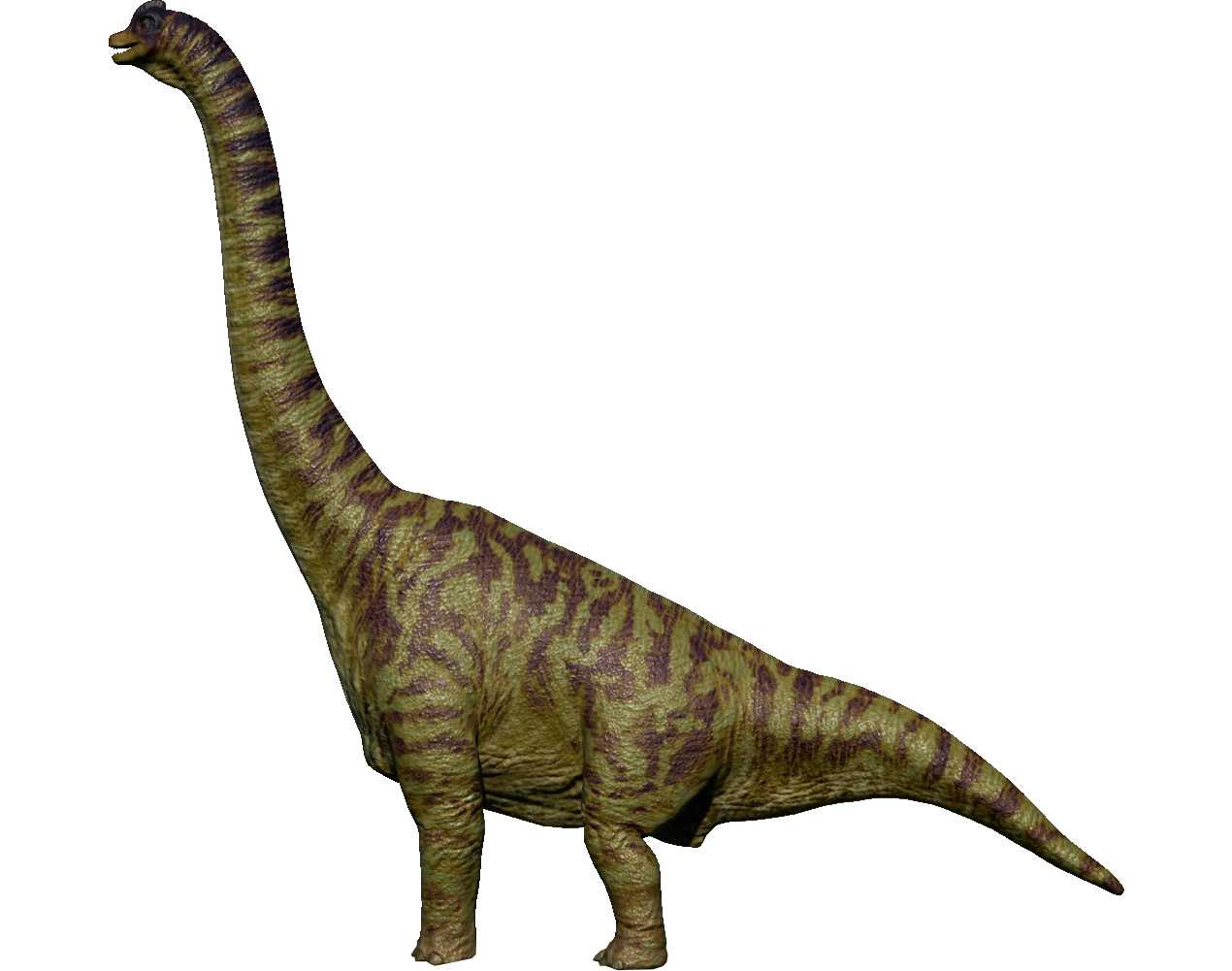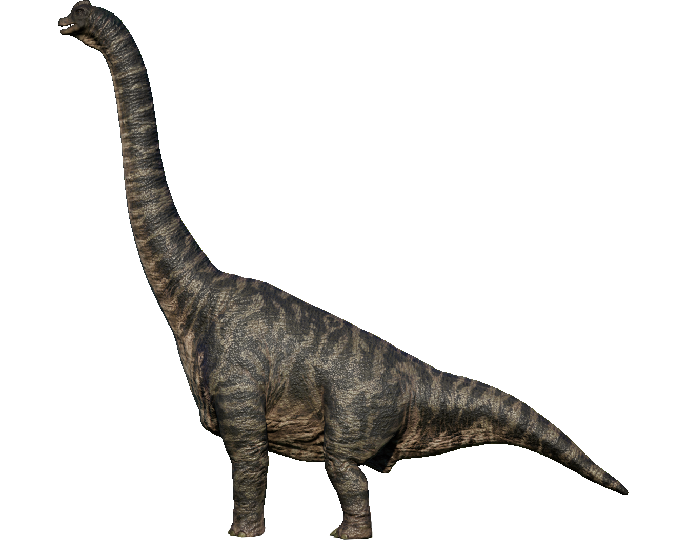 For the Return to Jurassic Park expansion pack, Brachiosaurus was given a makeover. In addition to twelve new cosmetic skins, the base model was given a new texture map to make it look closer to its depiction in Jurassic Park. A brand new model was also created to go along with the 2001 variant skins that is based on its depiction in Jurassic Park III. With a grand total of eighteen patterns (six patterns for each of its three model variants), Brachiosaurus has the most amount of cosmetic genes of any dinosaur in the game.