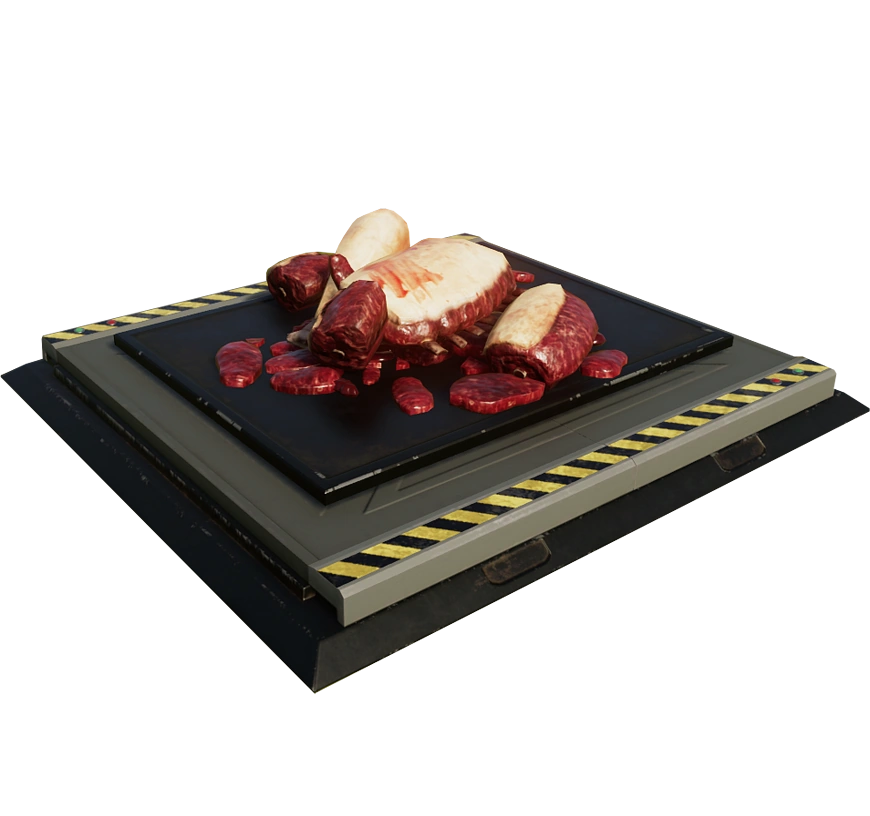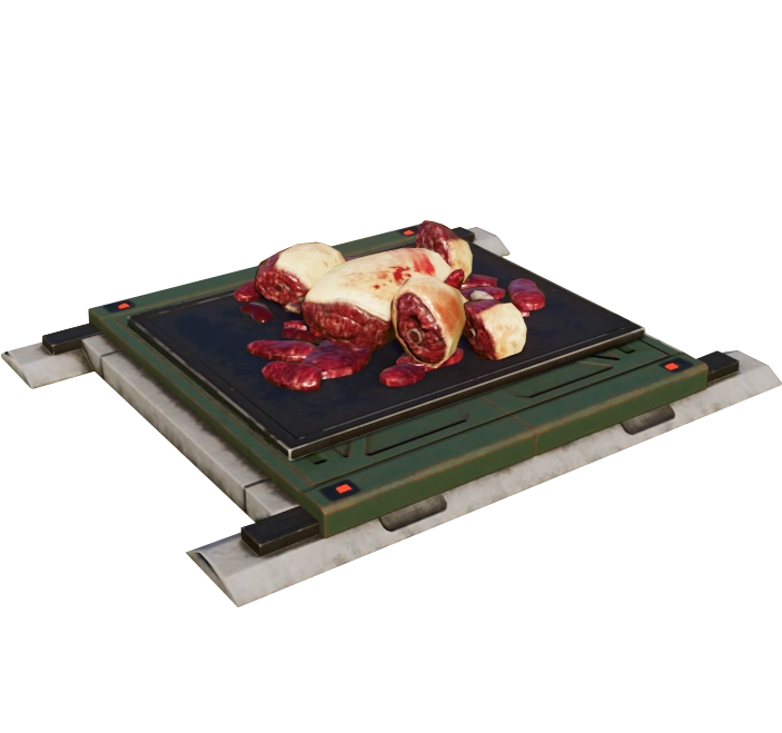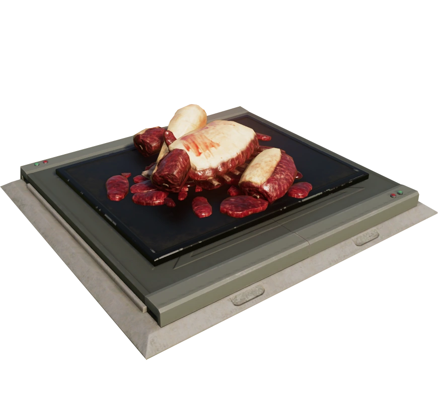 Carnivore feeders dispense their feed using a large hatch (with a time interval that can be adjusted by the player). This feeder emits hunks of meat that all carnivores will feed from. Once the feeder is emptied, it must be resupplied by a ranger team.