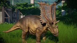 Chasmosaurus is a genus of ceratopsid dinosaur in the Jurassic World Evolution series. Originating from Late Cretaceous North America, it is a notably smaller quadrupedal ceratopsid.