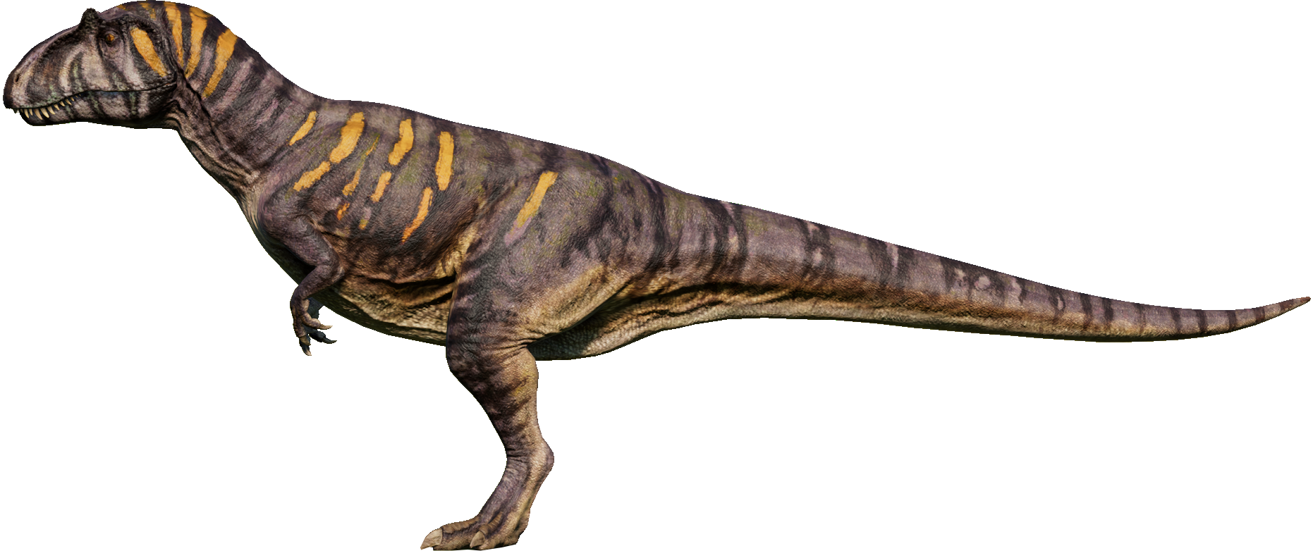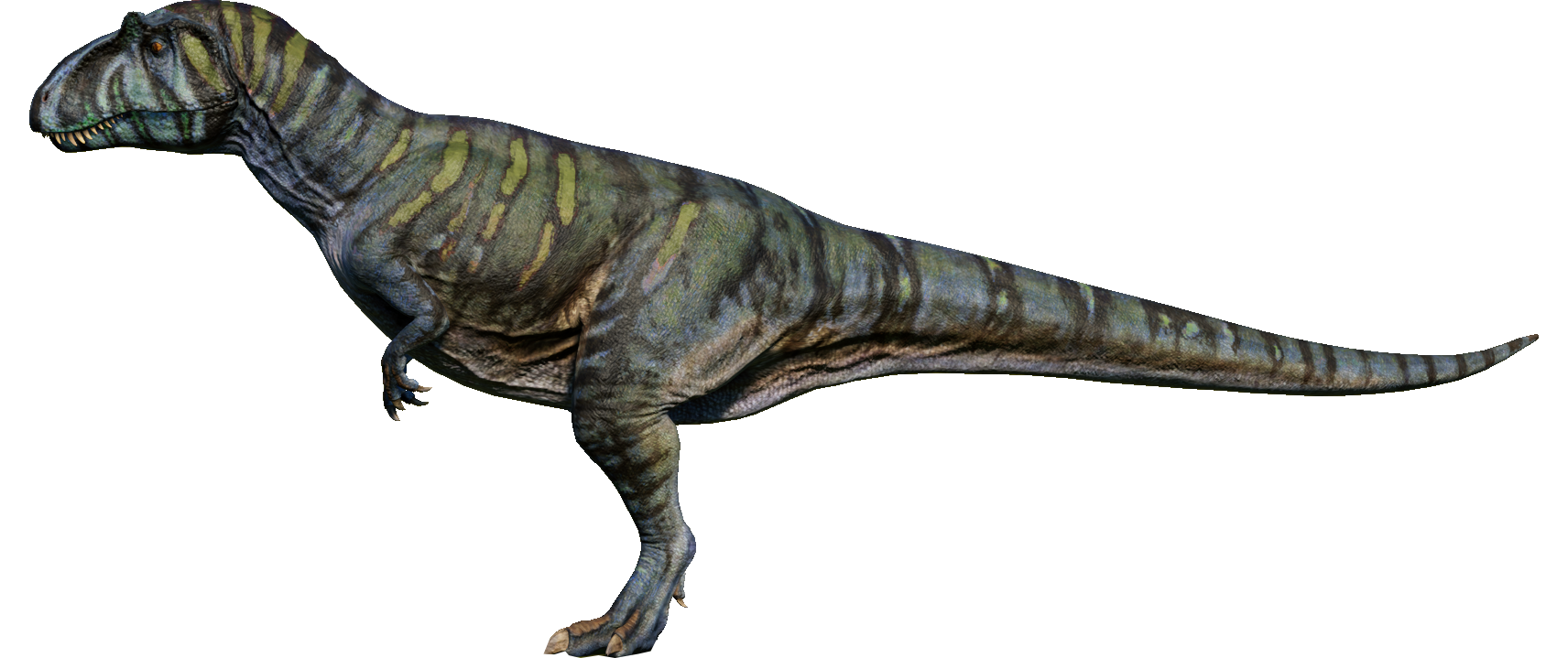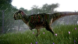 Metriacanthosaurus is one of the species that, despite being canon, has not appeared in any of the Jurassic films yet. So instead, the development team took inspiration from the design that is used in the promotional websites for Jurassic World, created by the renowned paleoartist Julius T. Csotonyi[2]