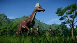 Olorotitan is a genus of hadrosaurid dinosaur in the Jurassic World Evolution series. Originating from Late Cretaceous Asia, it is a large, graceful herbivore named after is large, swan-like appearance.