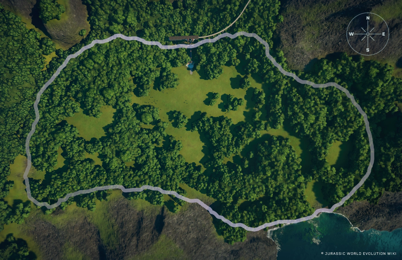 Tacaño Research Facility is a section of Isla Tacaño in the Secrets of Dr. Wu downloadable content for Evolution. It is a classified operation sequestered high in the mountains to the north of Isla Tacaño. Located next to a flooded crater, this site has long been kept secret from the rest of the Hammond Foundation. Dr. Henry Wu uses this facility to conduct cutting edge research into new hybrid dinosaurs.