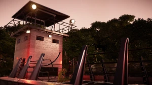 The Velociraptor Pen provides secure containment for Velociraptors on Isla Nublar (1993) campaign. However on Sandbox, Challenge Modes, or after Mission 7 of the Return to Jurassic Park Campaign, it serves only as a decorative building with no gameplay use. When operational, a park worker is stationed in the buildings watchtower.